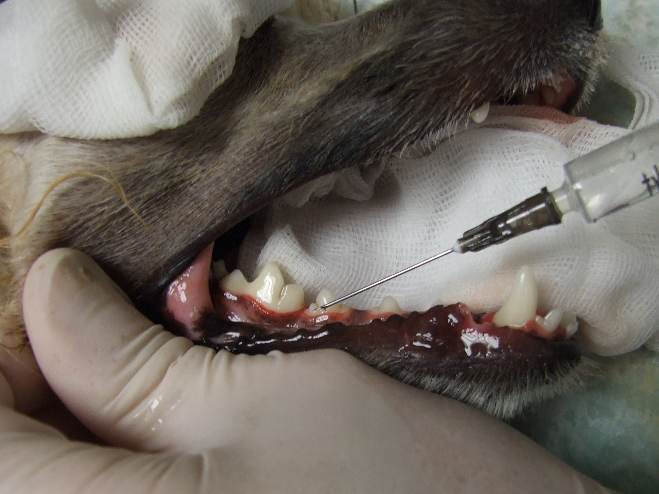 Sanaci chrupu provádíme v celkové anestezii. Po předoperačním vyšetření, které zahrnuje klinické vyšetření a volitelně také rozbor krve přímo v naší ordinaci, uvedeme pacienta do sedace nitrosvalovou aplikací. Dokud neusne, je žádoucí přítomnost jeho majitele. Následně je zajištěn žilní vstup katetrem, odebrány vzorky pro případné krevní analýzy, aplikována první dávka nitrožilní anestezie a zajištěny dýchací cesty tracheálním tubusem s nafukovací manžetou. Ta jednak zajišťuje bezpečné dýchání pacienta, mimo jiné ho také chrání před vdechnutím výplachových roztoků nebo kousků zubního kamene uvolněného ultrazvukovou sondou a rotačními nástroji. Pacient je obvykle připojen na infuzi zajišťující optimální hydrataci a krevní tlak, v chladnějším období je zajištěn teplotní komfort přikrývkou.