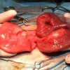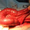 Lineární cizí těleso u 11měsíčního ridgebacka - z rozkousané bundy se zipem a plastového předmětu se vytvořilo lineární cizí těleso bezprostředně ohrožující život, které se na jednom konci zachytilo v žaludku a na druhý konec se navlékla cca 1/2 tenkého střeva. Za ní se bohužel vytvořila tzv invaginace - vchlípení jednoho úseku tenkého střeva do druhého. Kovový jezdec, který byl velmi dobře patrný na rentgenu, byl paradoxně volně v tlustém střevě a nezpůsoboval významnější obtíže. Museli jsme na několika místech vstoupit do žaludku a střev, přerušit a vyjmout cizí těleso, uvolnit vchlípení, zrevidovat životaschopnost střev a po zhodnocení stavu a perfuze krví uvést vše do původního stavu a dutinu břišní po výplachu uzavřít. Pacientovi se daří dobře, střeva fungují a už sám přijímá potravu.