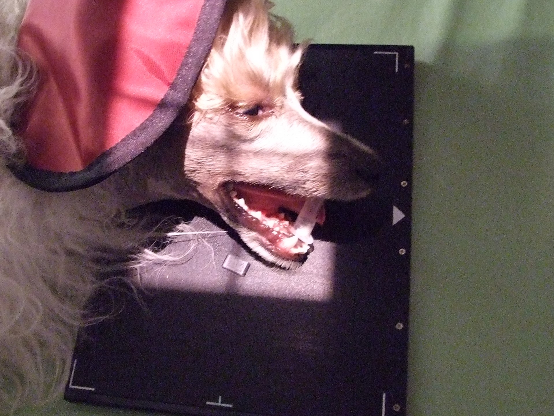 Sanaci chrupu provádíme v celkové anestezii. Po předoperačním vyšetření, které zahrnuje klinické vyšetření a volitelně také rozbor krve přímo v naší ordinaci, uvedeme pacienta do sedace nitrosvalovou aplikací. Dokud neusne, je žádoucí přítomnost jeho majitele. Následně je zajištěn žilní vstup katetrem, odebrány vzorky pro případné krevní analýzy, aplikována první dávka nitrožilní anestezie a zajištěny dýchací cesty tracheálním tubusem s nafukovací manžetou. Ta jednak zajišťuje bezpečné dýchání pacienta, mimo jiné ho také chrání před vdechnutím výplachových roztoků nebo kousků zubního kamene uvolněného ultrazvukovou sondou a rotačními nástroji. Pacient je obvykle připojen na infuzi zajišťující optimální hydrataci a krevní tlak, v chladnějším období je zajištěn teplotní komfort přikrývkou.